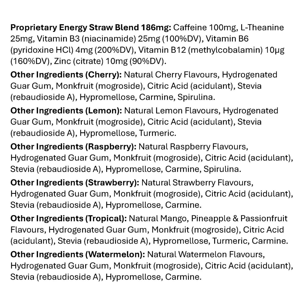 • Smooth energy now – 100mg caffeine + 25mg L-Theanine per straw.